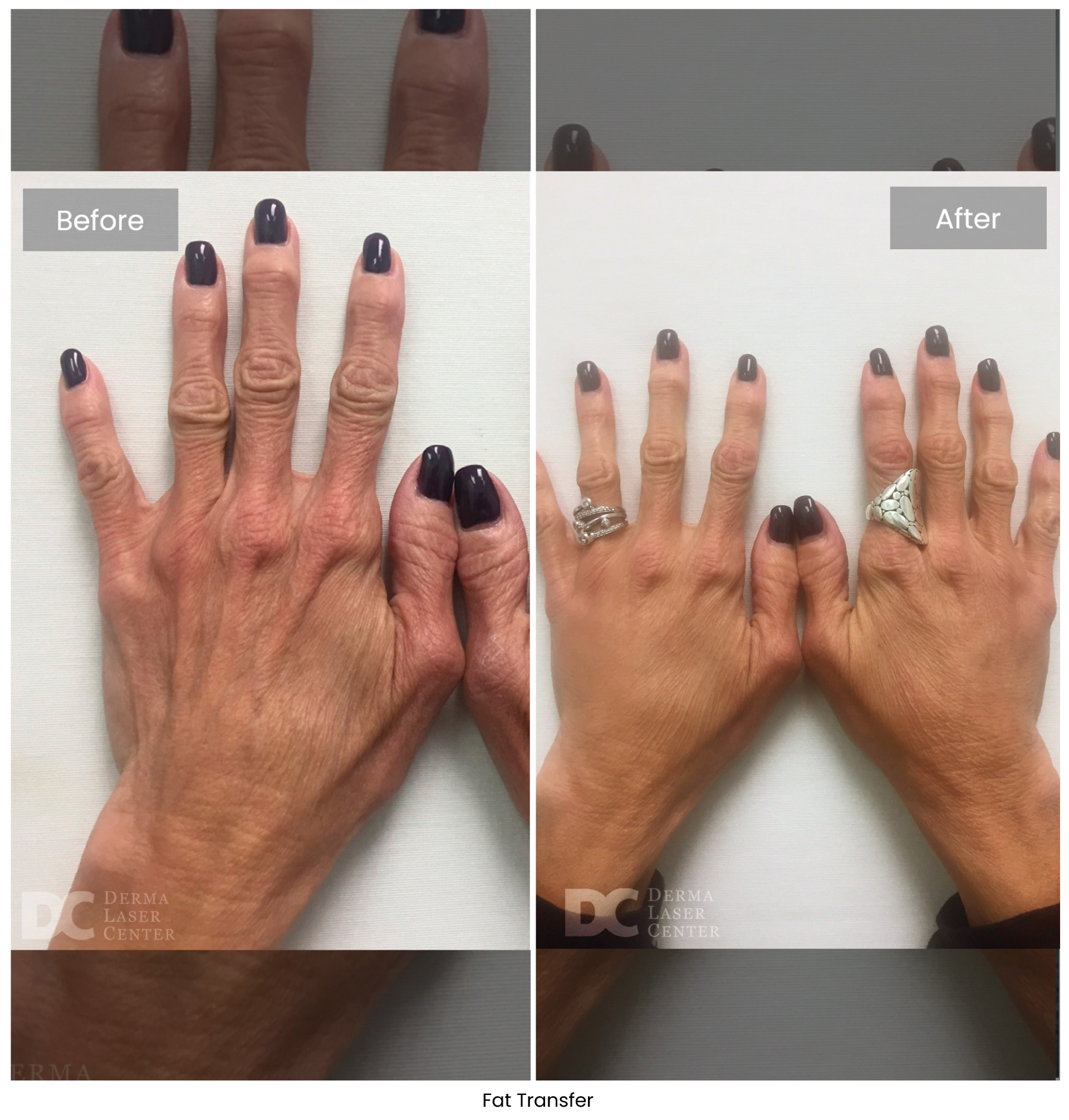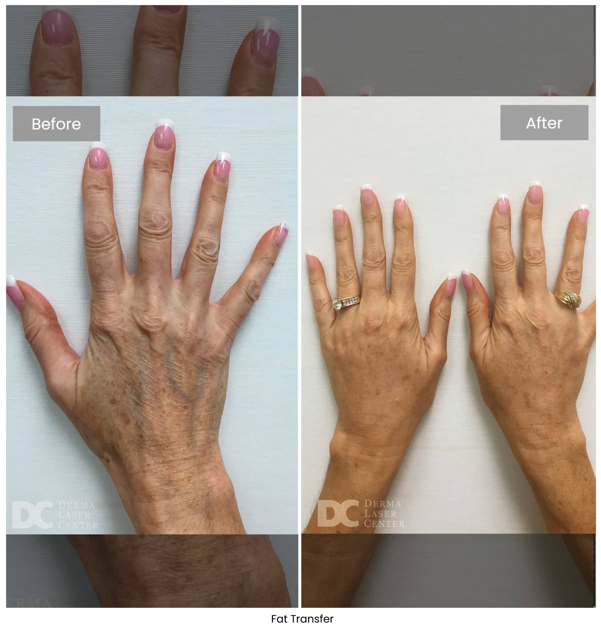 At Derma Laser Center, we use fat rich in regenerative stem cells to rejuvenate aging hands for visible and natural-looking results.
