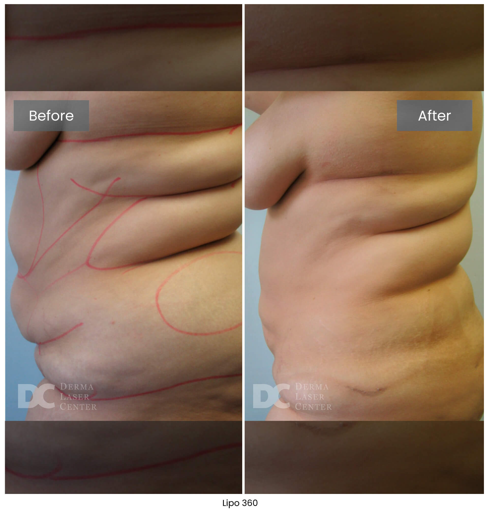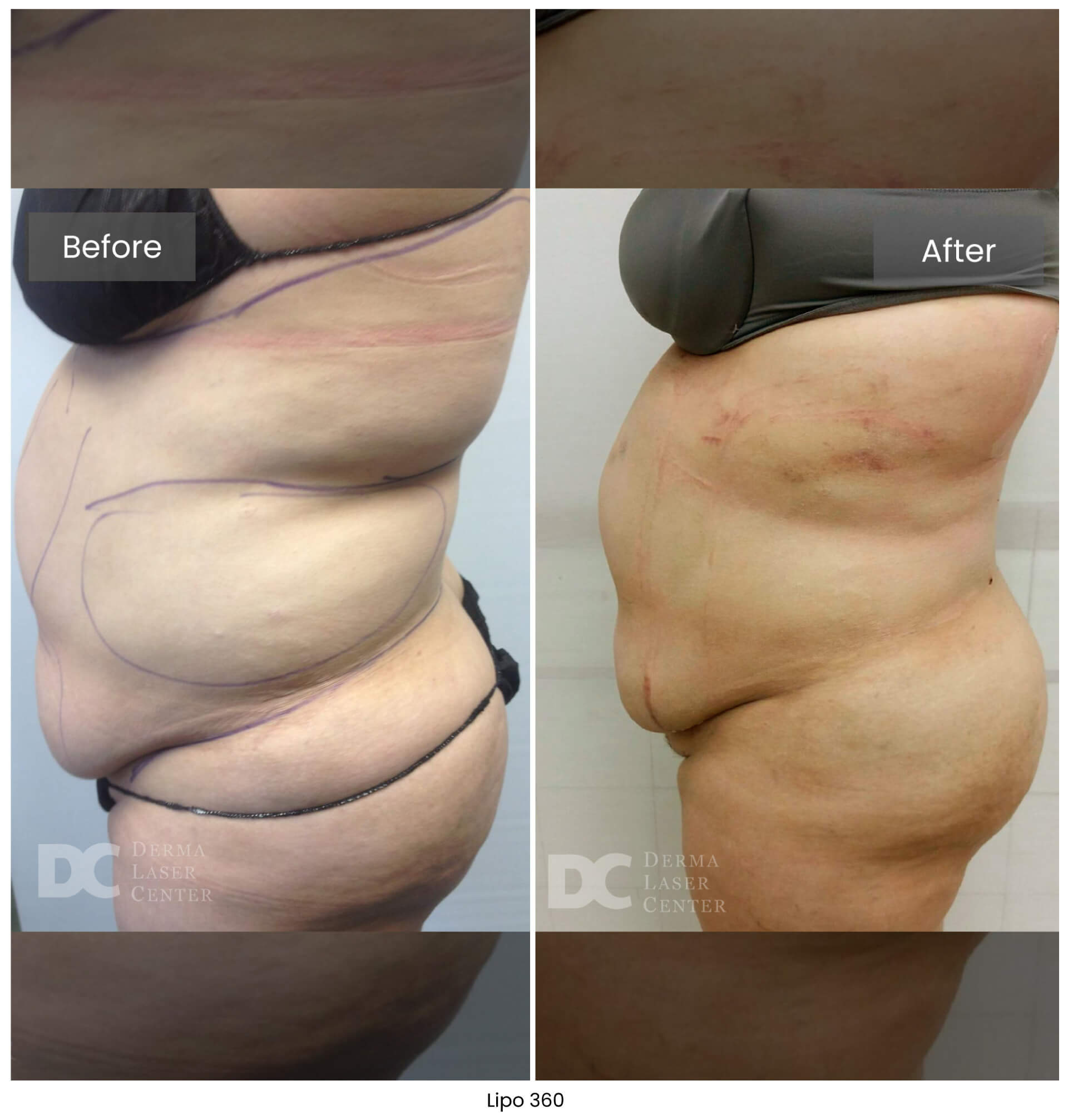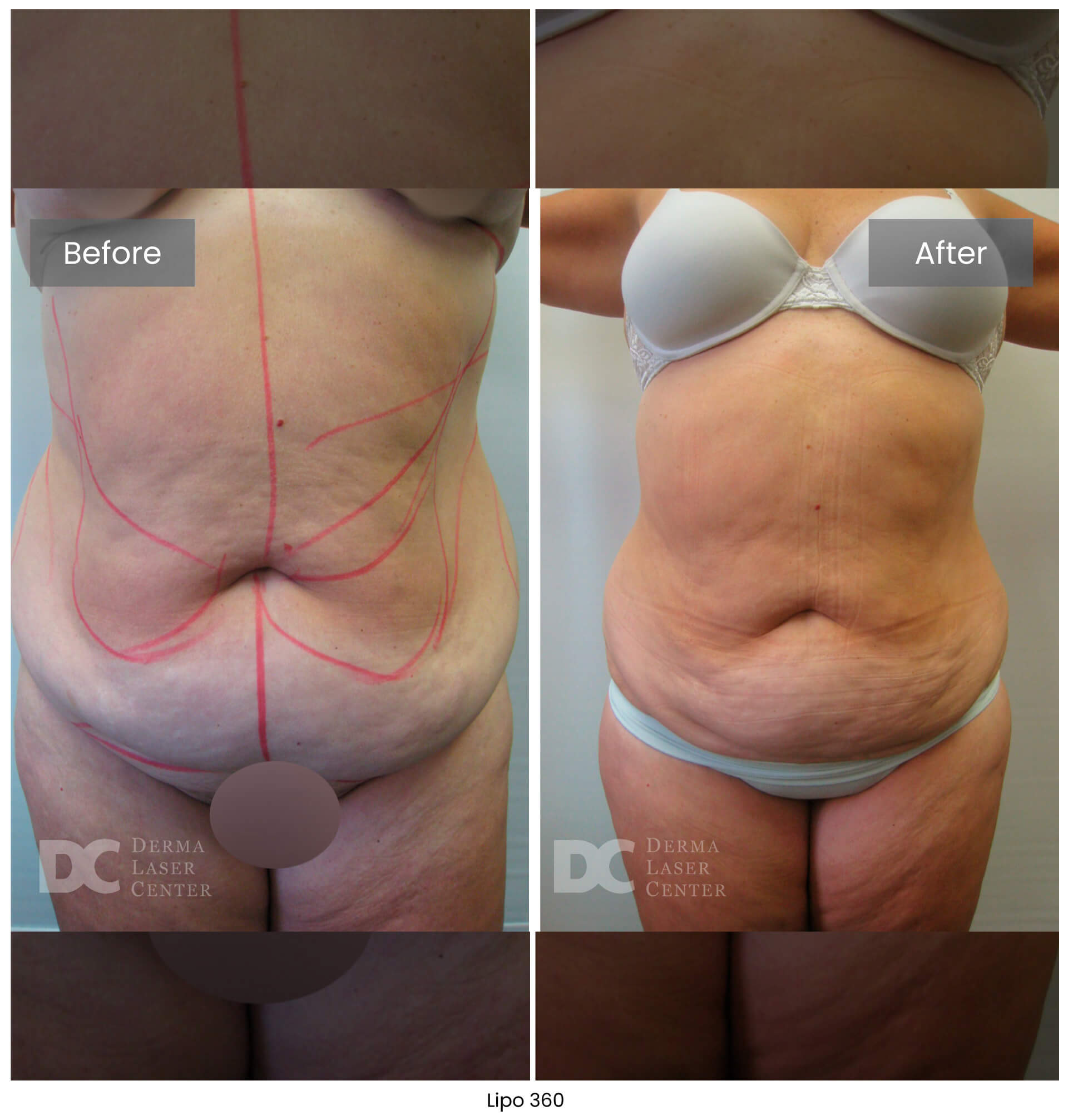 Lipo 360 is not a weight loss procedure. It’s a targeted body contouring treatment. Most patients notice a visible reduction of up to one dress size once swelling subsides. At Derma Laser Center, we focus on reshaping the midsection for a smoother, more defined silhouette using advanced, minimally invasive techniques.