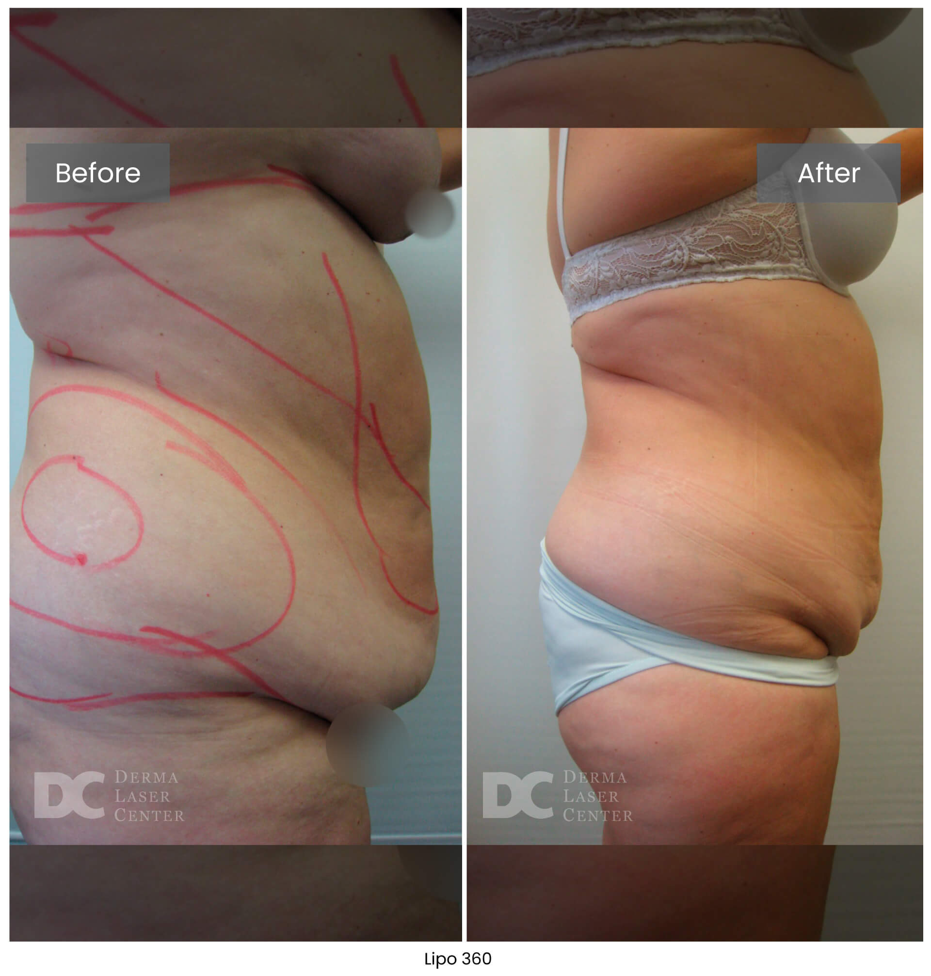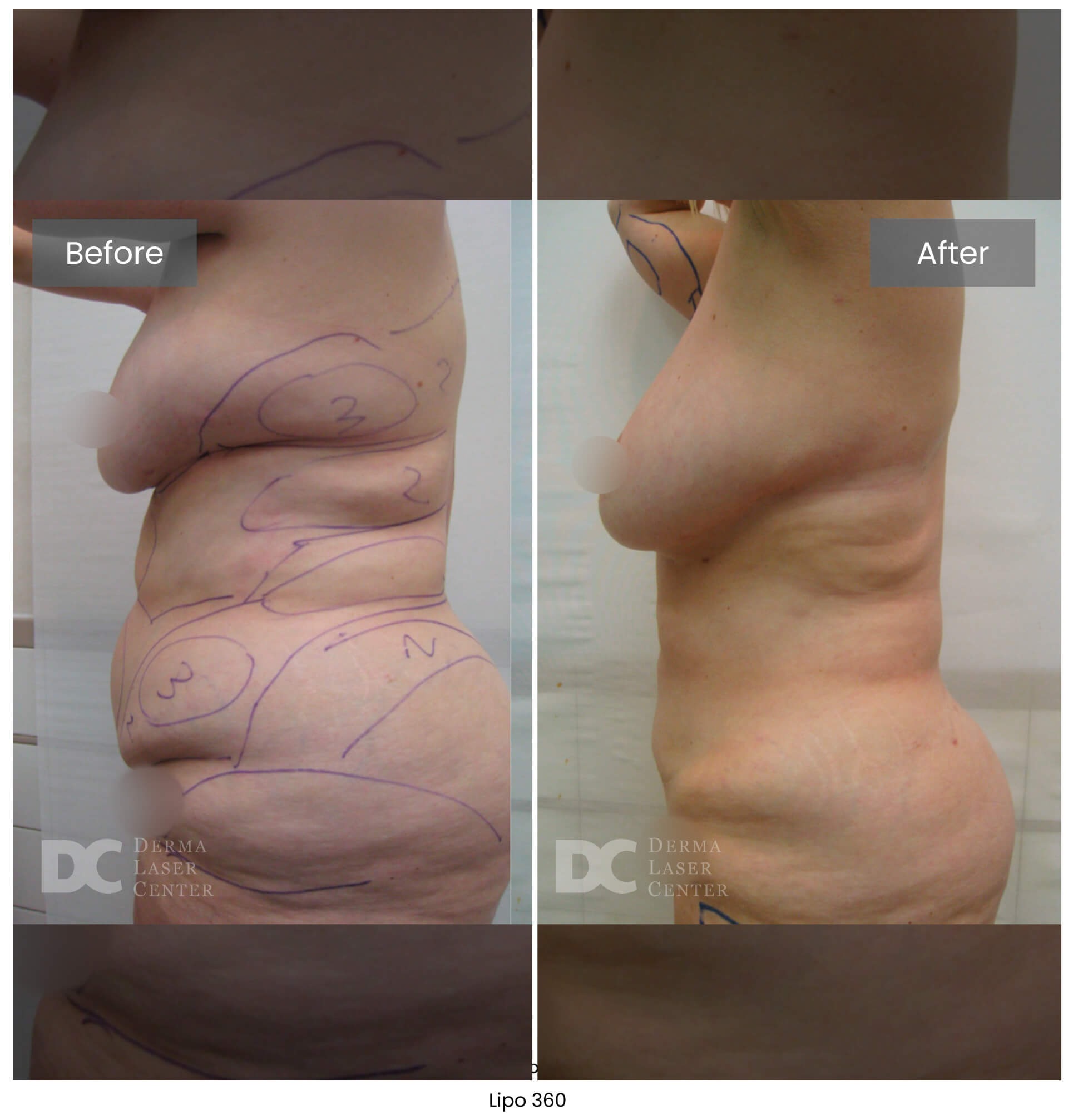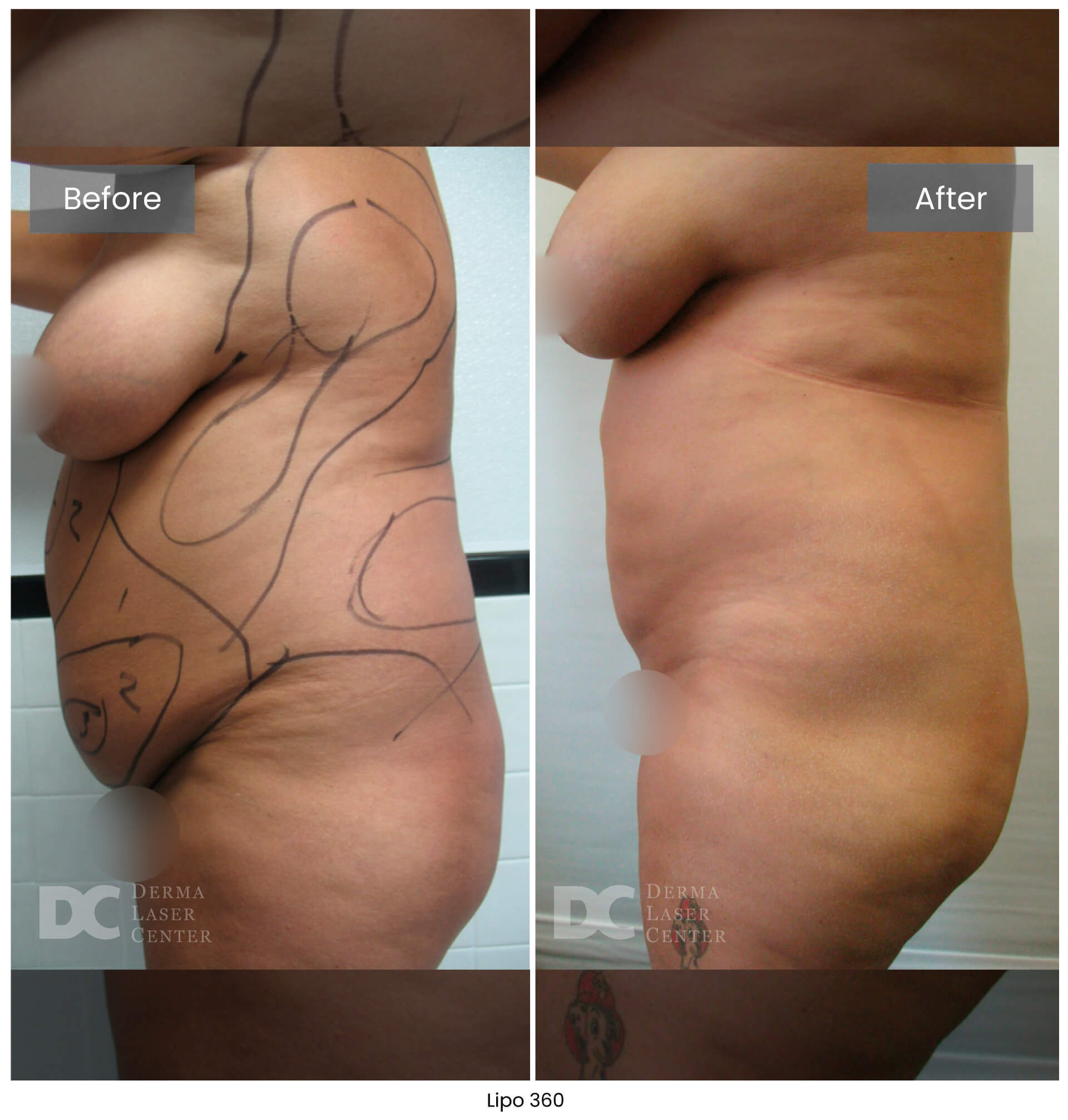 Lipo 360 is not a weight loss procedure. It’s a targeted body contouring treatment. Most patients notice a visible reduction of up to one dress size once swelling subsides. At Derma Laser Center, we focus on reshaping the midsection for a smoother, more defined silhouette using advanced, minimally invasive techniques.